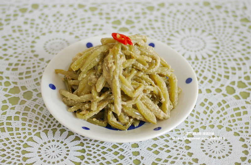 고구마 줄기는 껍질을 벗겨야 하는데, 연한 소금물에 담가 두었다가 줄기의 윗부분부터 껍질을 까면 쉽게 깔 수 있습니다. 껍질을 벗긴 후에는 소금물에 살짝 삶아서 찬물에 헹구고, 물기를 짜서 바람이 잘 통하는 곳에 말렸다가 먹을 때에 물에 불려 먹으면 보관과 조리에 편합니다.