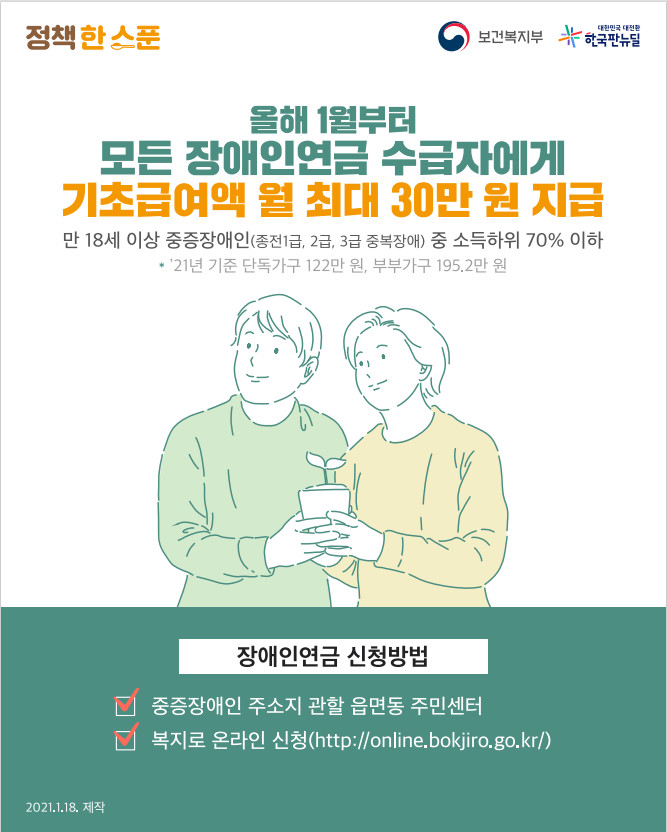 - 장애인 연금 지급 신청서(주민센터에 비치)
