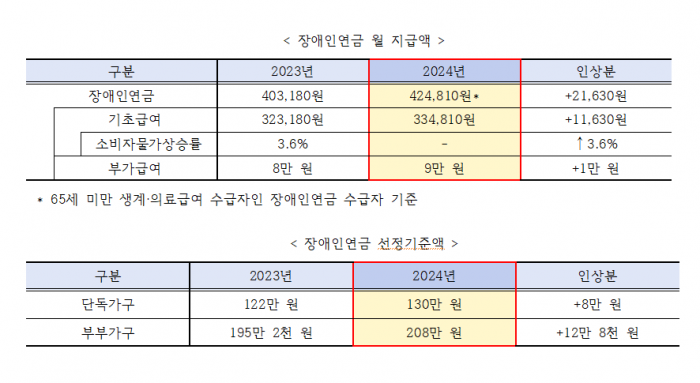 장애인 연금 금액