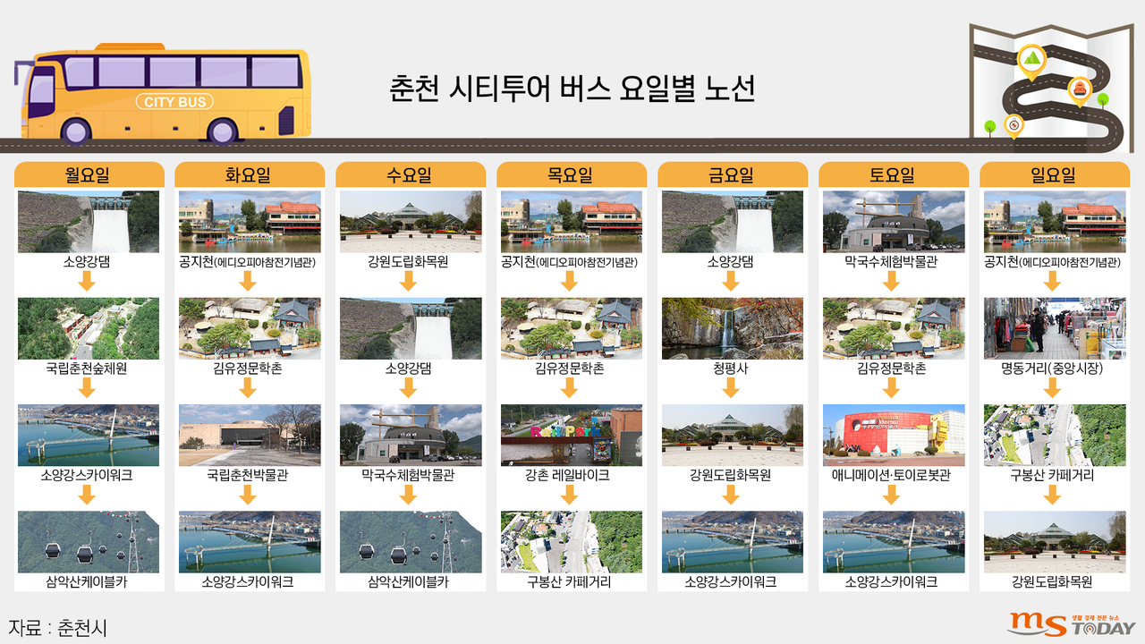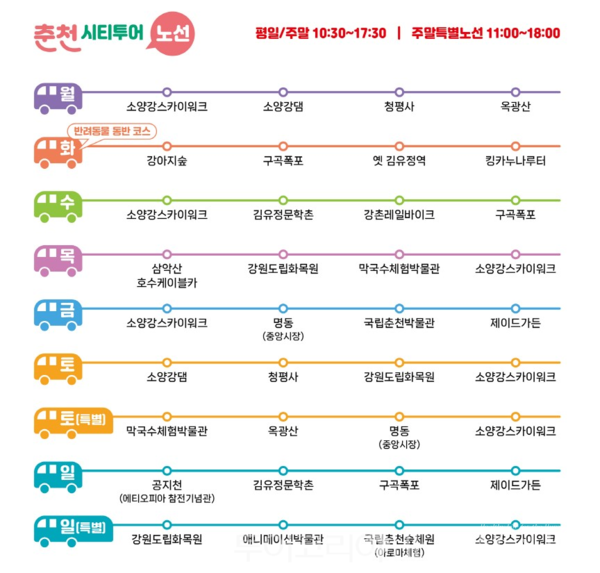 춘천시티투어버스 요일별 운영 일정 및 코스